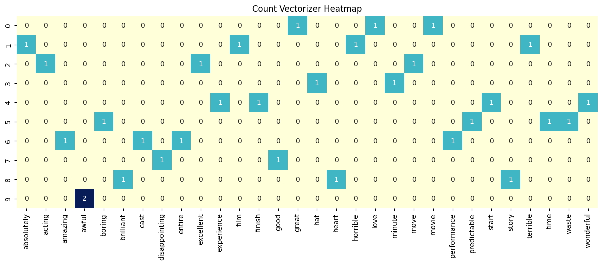Note: words not in the training vocabulary disappear from count/TF-IDF vectors.